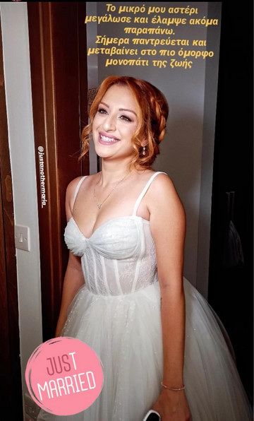 Το ζευγάρι έλαμπε από ευτυχία με τα στιγμιότυπα που έχουν κυκλοφορήσει να είναι μοναδικά. Κουμπάρα της Μαρίας, ήταν η ηθοποιός και πολύ καλή της φίλη Χριστιάνα Αρτεμίου, η οποία με ανάρτησή της στο Instagram έκανε μια ξεχωριστή αφιέρωση στη νύφη.