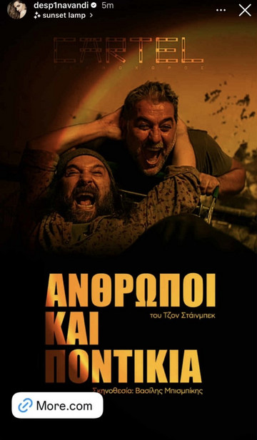Το βράδυ της Πέμπτης (9/10) η δημοφιλής τραγουδίστρια έδειξε μέσω social media τη στήριξή της στον σύντροφό της, δημοσιεύοντας την αφίσα για την παράσταση “Άνθρωποι και Ποντίκια, που σκηνοθετεί και πρωταγωνιστεί ο ίδιος, δείχνοντας πως δεν έχει φύγει στιγμή από το πλευρό του.