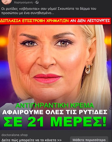 Όπως μπορείτε να δείτε στην πιο πάνω εικόνα, κατάστημα καλλυντικών έκανε photoshop σε φωτογραφία της παρουσιάστριας, γεμίζοντας την ρυτίδες στη μια πλευρά του προσώπου και στην άλλη, δείχνουν το “αποτέλεσμα” που προσφέρουν τα προϊόντα τους, προκειμένου να πουλήσουν μια αντιγηραντική κρέμα.
