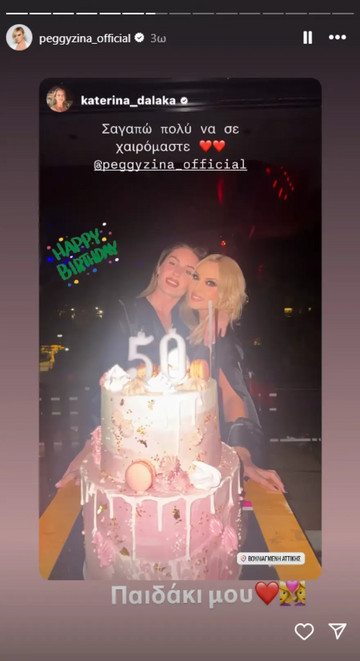 Η Πέγκυ Ζήνα με τη σειρά της, ανήρτησε στον προσωπικό της λογαριασμό στιγμιότυπα από το πάρτι που είχαν δημοσιεύσει οι φίλοι της. Ανάμεσα στους καλεσμένους βρισκόταν και η καλή της φίλη, Κατερίνα Δαλάκα, η οποία ανήρτησε μια φωτογραφία με την Πέγκυ Ζήνα, γράφοντας: «Σ’ αγαπώ πολύ, να σε χαιρόμαστε». Η τραγουδίστρια ανταπέδωσε την τρυφερή δήλωση, αναφέροντας στην αναδημοσίευση της: «Παιδάκι μου».