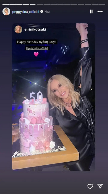 Στο background έπαιζε το «Χρόνια Πολλά» του Βασίλη Παπακωνσταντίνου και η Πέγκυ Ζήνα φαινόταν να απολαμβάνει κάθε στιγμή του εορτασμού.