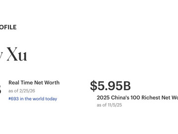 Aν και η περιουσία του δεν μπορεί να υπολογιστεί ακριβώς, το όνομά του έχει φιγουράρει σε πολλές λίστες δισεκατομμυριούχων του Forbes και ιδιαίτερα σε αυτή των πλουσιότερων Κινέζων, μαζί με μεγιστάνες όπως ο Ζονγκ Σανσάν της Nongfu Spring, ο Ζαμ Γιμίνγκ της ByteDance (μητρικής του TikTok) ή ο Τζακ Μα της Alibaba.