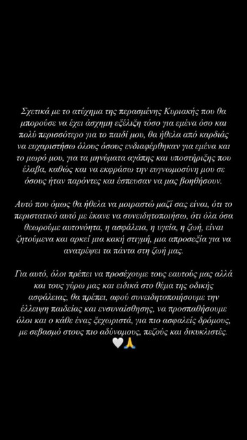Η αναφορά αυτή ήρθε με αφορμή την ανάρτηση της Αλεξάνδρας Νίκα στο Instagram, σχετικά με το ατύχημα που είχε στο Κολωνάκι.