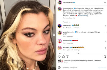 «Χρόνια πολλά, Ηλέκτρα μου. Καλή, τρυφερή, γλυκιά, σοφή. Μου άλλαξες τη ζωή και μου έδειξες τις γάτες. Από μωρό, πάντα με μία γάτα στην αγκαλιά σου σε κάθε ταβέρνα. Είσαι μια ψυχή τεράστια. Σε λατρεύω», έγραψε η Δωροθέα Μερκούρη στον λογαριασμό της.