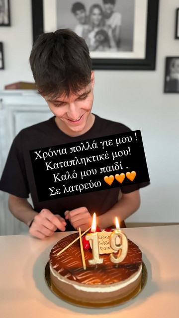 Στην εικόνα, ο νεαρός Φίλιππος χαμογελάει πάνω από την τούρτα του, η οποία φέρει τον αριθμό «19» και τη λιτή αλλά γεμάτη συναισθηματική αξία ευχή: «Χρόνια πολλά Φίλιππε». Στο φόντο της φωτογραφίας διακρίνεται μια οικογενειακή εικόνα που αποπνέει ζεστασιά και αγαπημένη σύνδεση, ενώ φαίνεται καθαρά ότι η οικογένεια της Ντορέττας είναι πολύ δεμένη.