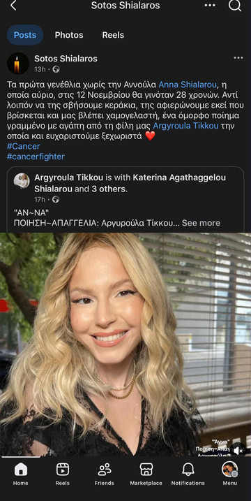Σήμερα,12 Νοεμβρίου, θα γιόρταζε τα γενέθλιά της, όμως αντ’ αυτού οι φίλοι και οι συγγενείς της τιμούν τη μνήμη της με λόγια γεμάτα αγάπη και συγκίνηση. Η Άννα Σιαλάρου υπήρξε ένα αγαπητό πρόσωπο της κυπριακής κοινωνίας, γνωστή για το χαμόγελό της, τη θετική της ενέργεια και την αστείρευτη δύναμή της.