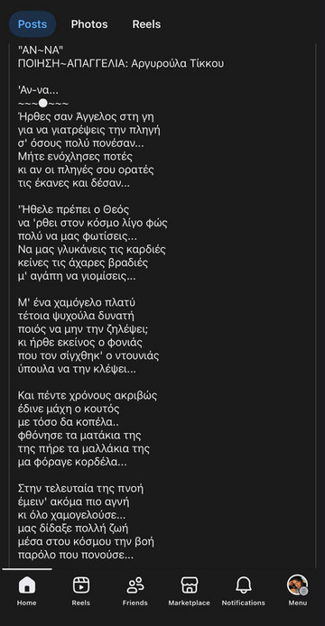 Ιδιαίτερα συγκινητικά είναι και τα λόγια του πατέρα της ο οποίος διαχειρίζεται τους λογαριασμους της Άννας, δημοσιεύοντας συχνά παλιό υλικό με σκοπό να μην ξεχαστεί ποτέ. Συγκεκρίμενα, χθες ανέβασε και στον προσωπικό του λογαριασμό στο Facebook, μία φωτογραφία γράφοντας “Ήρθες σαν άγγελος στην γή για να γιατρέψεις την πληγή..”