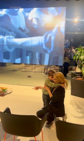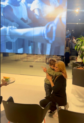 Στο τέλος της προβολής, ο γιος της έτρεξε στην αγκαλιά της, δημιουργώντας μια αξέχαστη στιγμή γεμάτη αγάπη και συναισθήματα.
