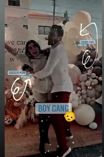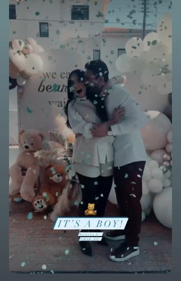 Σε μια από τις αναρτήσεις της μας δείχνει ξαφνικά ο χώρος γέμισε με μπλε κομφετί και κάπως έτσι μάθαμε πως το ζεύγος περιμένει αγοράκι.