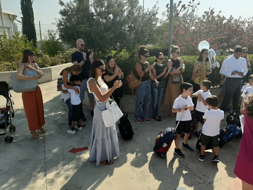 Η παρουσιάστρια επισκέφθηκε το Γ’ Δημοτικό Μακεδονίτισσας για να πάρει τον μικρότερο γιο της στο καινούργιο σχολείο του. Ιδιαίτερα χαρούμενη για το γεγονός, συνόδευσε τον γιο της, συνομιλούσε με μαμάδες, φωτογράφησε τον μικρό με τα σχολικά ρούχα, ενώ δεν έφυγε μέχρι να μπει η αδυναμία της στην τάξη.