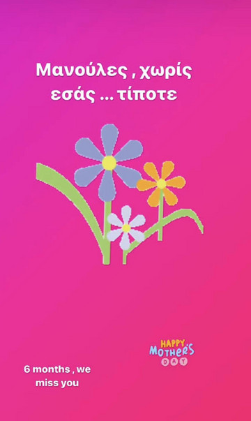“Μανούλες, χωρίς εσάς… τίποτε. 6 μήνες, μας λείπεις”, έγραψε στα social media δείχνοντας την απουσία της και το μεγάλο μητρικό κενό που άφησε πίσω της.