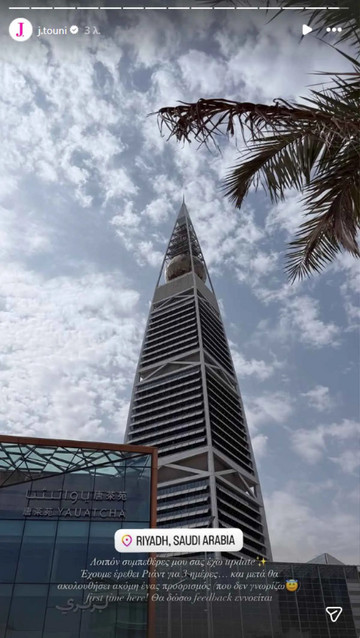 «Λοιπόν συμπεθέρες μου σας έχω update. Έχουν έρθει Ριάντ για 3 μέρες… και μετά θα ακολουθήσει ακόμη ένας προορισμός που δεν γνωρίζω. First time here! Θα δώσω feedback εννοείται» έγραψε χαρακτηριστικά η Ιωάννα Τούνη στο Instagram.