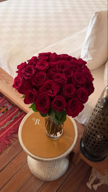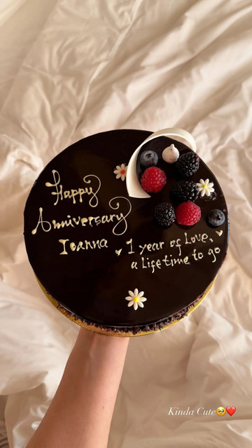 Το πρώτο ήταν μια κατακόκκινη ανθοδέσμη, την οποία η Ιωάννα δημοσίευσε γράφοντας το αρχικό R. Το γράμμα αυτό παραπέμπει στο Ρομπέρτο, το ψευδώνυμο που έχουν δώσει στον Δημήτρη φίλοι του και που φαίνεται να χρησιμοποιείται συχνά μεταξύ τους. Παράλληλα, η influencer έδειξε και την τούρτα που της χάρισε, πάνω στην οποία αναγραφόταν το μήνυμα: «Happy Anniversary Ioanna. 1 year of love, a lifetime to go».