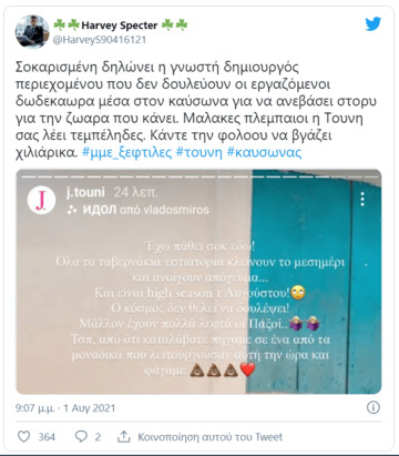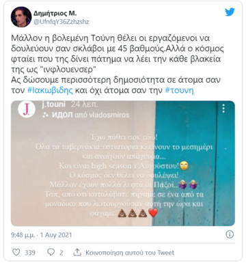 Η συγκεκριμένη δήλωση προκάλεσε αντιδράσεις με πολλούς χρήστες των social media να κατηγορούν την πρώην παίκτρια του “My Style Rocks” πως δεν αντιλαμβάνεται τη δύσκολη κατάσταση στην οποία βρέθηκαν πολλοί εργαζόμενοι με το lockdown.