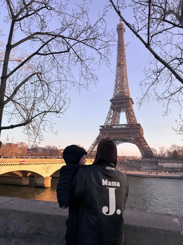 Στα στιγμιότυπα, είτε μόνη της είτε έχοντας στην αγκαλιά της το παιδί της, η Ιωάννα Τούνη ποζάρει με τον Πύργο του Άιφελ να διακρίνεται στο βάθος.