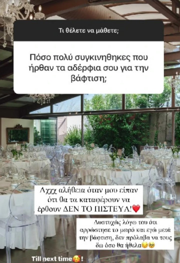 «Πάρης Αλεξάνδρου. Και κάπως έτσι… ο νούνι έγινε Πάρης!Σας δείχνουμε μερικές εικόνες από την πιο ονειρεμένη βάπτιση ΤΟΥ ΚΟΣΜΟΥ ΟΛΟΥ! Όλοι οι αγαπημένοι μας ήταν εκεί… Όλα ήταν παραπάνω από υπέροχα!!! Πάρη μας, σου ευχόμαστε το πιο όμορφο και λαμπρό μέλλον… θα είμαστε πάντα στο πλάι σου να σε αγαπάμε και να σε στηρίζουμε!», είχε επίσης δηλώσει.