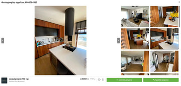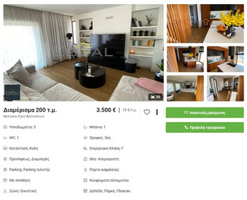 Η αγγελία για το διαμέρισμα των 200 τ.μ., που βρίσκεται στα Βόρεια Προάστια (στα όρια των Βριλησσίων), δημοσιεύθηκε στην ιστοσελίδα xe.gr, και αναζητά νέο ενοικιαστή.