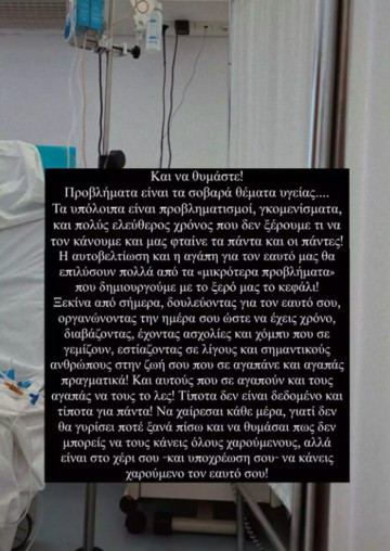Αγαπημένο πρόσωπο της Ιωάννας Τούνη νοσηλεύεται στο νοσκοκομείο και η ίδια θέλησε να στείλει το δικό της μήνυμα μέσα από τον λογαριασμό της στο Instagram, υπενθυμίζοντας στους διαδικτυακούς της φίλους, ποια πράγματα είναι σημαντικά στη ζωή .