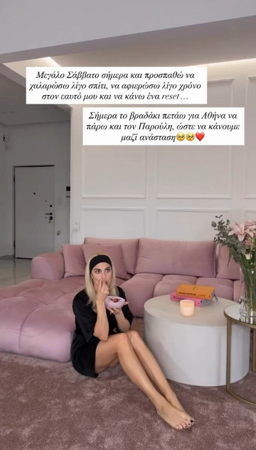 Όπως είδαμε στο βίντεο που ανέβασε, η ίδια χαλάρωνε στο σαλόνι του σπιτιού της στη Θεσσαλονίκη λίγο πριν από το ταξίδι της στην πρωτεύουσα.