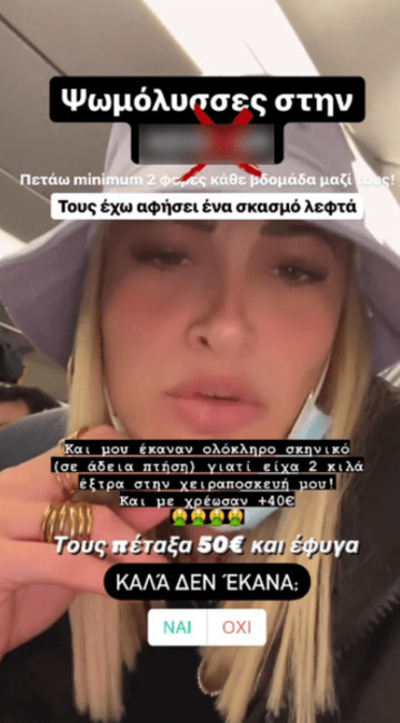 Όπως εξήγηση, η χειραποσκευή της βγήκε υπέρβαρη δυο κιλά και της ζήτησαν 40€ και εκείνη τόνισε ότι τους πέταξε 50€ και έφυγε.