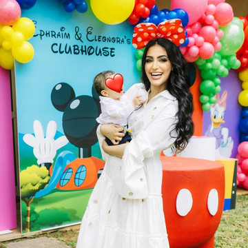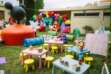 Το σκηνικό ήταν βγαλμένο από τη μαγεία της Disney, μιας και το θέμα ήταν ο Μίκυ. Έτσι λοιπόν, ο Μίκυ και η Μίνι υποδέχθηκαν τους μικρούς και μεγάλους καλεσμένους σε έναν χώρο υπέροχο εξωτερικό χώρο. Κόκκινα, μαύρα και πράσινα μπαλόνια, συνοδευόμενα από άλλες χρωματιστές λεπτομέρειες, διακοσμούσαν τον παιδότοπο.