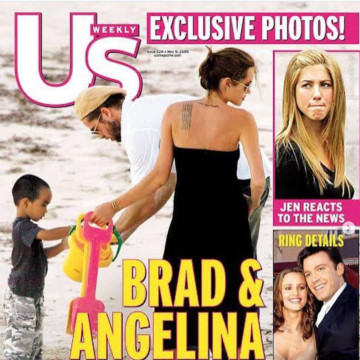 Τίποτα δεν επιβεβαιώθηκε για τη σχέση του με τη Τζολί, μέχρι τη στιγμή που κυκλοφόρησαν στο US Weekly οι επίμαχες φωτογραφίες τον Μάιο του 2005.