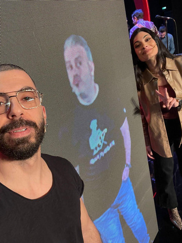 Πώς; Με ειδική σύνδεση μέσω οθόνης, που θυμίζει ολόγραμμα ο Λούης είναι λες και παρουσιάζει το σόου, αφού κάνει το μονολόγο του κανονικά με το κοινό.