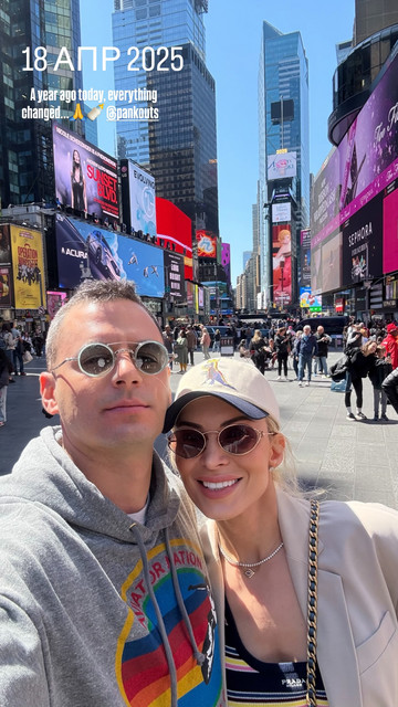 Η παρουσιάστρια ανέβασε μία φωτογραφία στην ιστορία της, στην οποία η ίδια μαζί με τον αγαπημένο της βρίσκονται στην γνωστή πλατεία Times Square της Νέας Υόρκης, την οποία φαίνεται πως είχαν επισκεφθεί μαζί πριν από ένα χρόνο, πολύ πριν γίνουν γονείς.