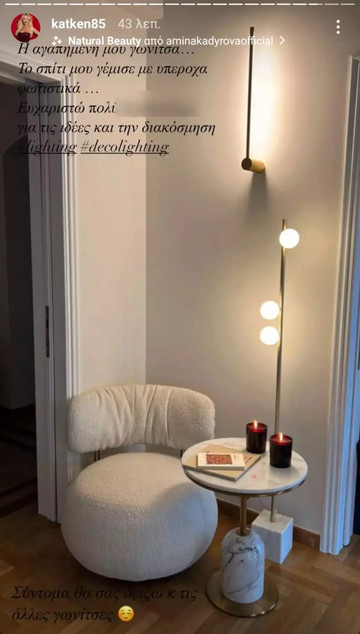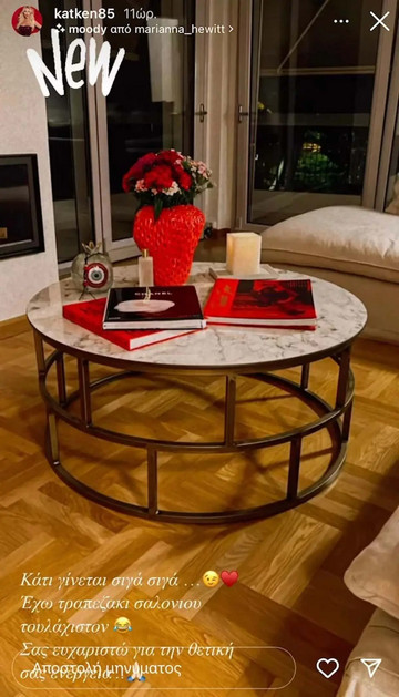 Η Κατερίνα Καινούργιου από πριν γνωρίσει τον αγαπημένο της, Παναγιώτη Κουτσουμπή έμενε στο σπίτι της στο Κολωνάκι, το οποίο είχε διακοσμήσει με το προσωπικό του γούστο.