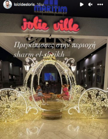 Ο Λώρης Λοϊζίδης μάζι με την σύζυγό του Στυλιάνα Μαραγκού και τις δίδυμες κόρες τους απόλαυσαν τις διακοπές τους στο Sharm El-Sheikh, προς τα τέλη Αυγούστου. Ο σεναριογράφος και ηθοποιός απαθανάτισε τις κόρες του να ποζάρουν χαρούμενες σε μια κατασκευή που θύμιζει άμαξα.