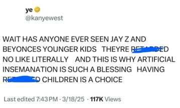 Kanye West attacks Beyoncé and Jay-Z’s kids in disgusting, unprovoked X rant https://t.co/TsJ26x9FAV pic.twitter.com/k8wwsmgRRk