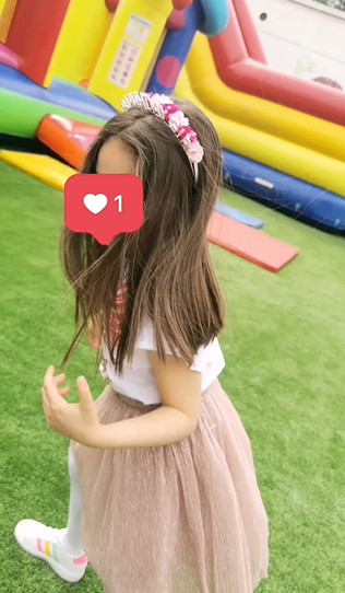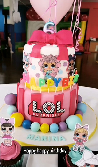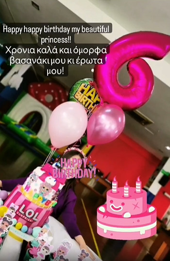 Η μικρή έπαιξε με φίλους της στα φουσκωτά που υπήρχαν στον χώρο ενώ την παράσταση έκλεψε η διώροφη ροζ τούρτα με τον μεγάλο φιόγκο.
