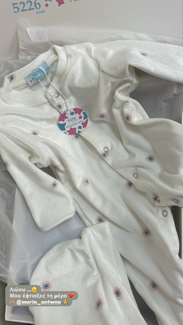 Συγκεκριμένα, της έστειλε ένα πολύ ωραίο φορμάκι με σκουφάκι από τη συλλογή παιδικών ρούχων της Αλεξάνδρας Νίκα σε συνεργασία με την Σήλια Κριθαριώτη.