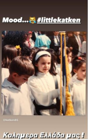 Συγκεκριμένα, η παρουσιάστρια λίγο πριν βγει στον τηλεοπτικό αέρα της εκπομπής Super Κατερίνα μέσα από ένα instastory ευχήθηκε “Χρόνια Πολλά” με μια φωτογραφία της από το Δημοτικό σχολείο που έκανε παρέλαση κρατώντας την ελληνική σημαία.
