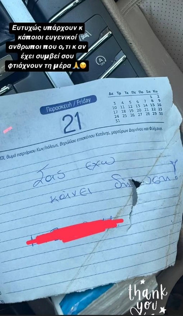 Η ανθρώπινη αυτή κίνηση εντυπωσίασε ιδιαίτερα την παρουσιάστρια, η οποία φωτογράφισε το σημείωμα και το δημοσίευσε στον προσωπικό της λογαριασμό στο Instagram, γράφοντας: