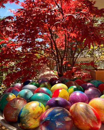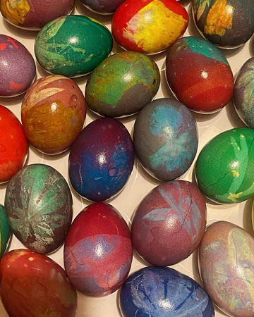 Η δημιουργική οικογένεια άφησε στην άκρη το κλασικό κόκκινο και τόλμησε μια πιο πολύχρωμη, παιχνιδιάρικη προσέγγιση, με εντυπωσιακά σχέδια, φαντασία και μπόλικη χαρά. Μερικά από τα αυγά τους, όπως αποκάλυψε η ίδια μέσα από ανάρτησή της στο Instagram, είχαν τόσο ιδιαίτερη διακόσμηση που κάποιοι τα παρομοίασαν ακόμα και με… κρεμμύδια!