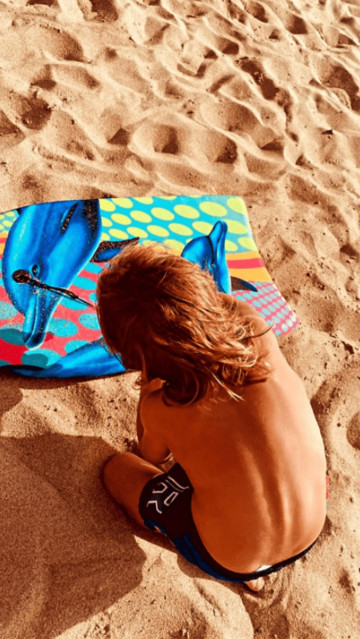 Η Κατερίνα Καραβάτου δημοσίευσε άλλη μια φωτογραφία του Αρίωνα από την παραλία, όπου παίζει με την άμμο.