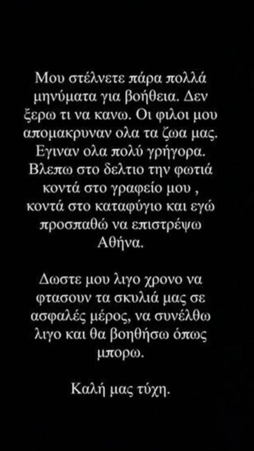 Αυτή τη φορά, η Κατρίνα Τσάνταλη ζήτησε κάποιον με βανάκι για να τη βοηθήσει να μεταφέρουν σε ασφαλές σημείο τα ζωάκια που φιλοξενεί στο καταφύγιό της.