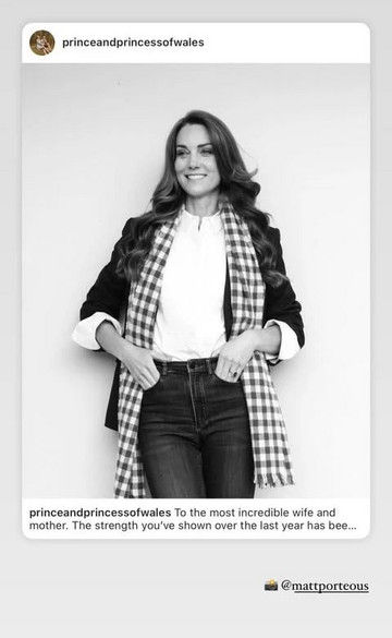 Από την πλευρά του, ο επίσημος λογαριασμός των Ουαλών έκανε μια πιο προσωπική ανάρτηση για τα γενέθλια της Κέιτ. Το μήνυμα που υπογράφει ο Πρίγκιπας Γουίλιαμ αναφέρει: Για την πιο απίστευτη σύζυγο και μητέρα. Η δύναμη που έχεις δείξει τον τελευταίο χρόνο είναι αξιοθαύμαστη. Ο Τζορτζ, η Σαρλότ, ο Λούις και εγώ είμαστε τόσο περήφανοι για σένα. Χρόνια Πολλά, Κάθριν. Σ’ αγαπάμε. Γουίλιαμ.