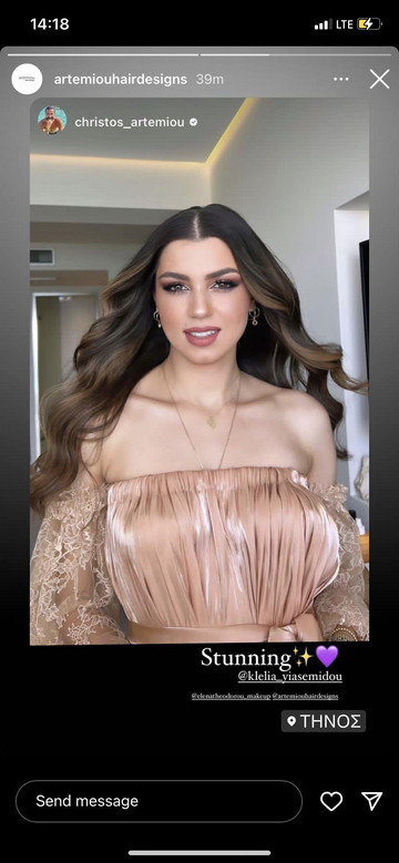Το hair-look της επιμελήθηκε ο Χρήστος Αρτεμίου ο οποίος ανάρτησε και την φωτογραφία με το look της ενώ το make-up της ανάλαβε η Έλενα Θεοδώρου.