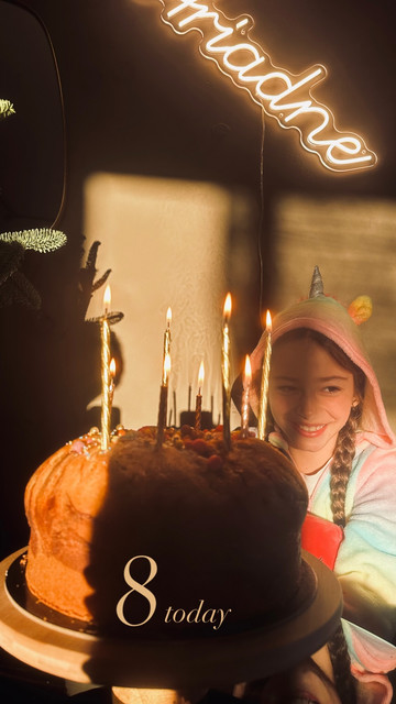 Σήμερα, την ημέρα των γενεθλίων της η ευτυχισμένη μητέρα της θέλησε να της κάνει μία όμορφη, πρωινή έκπληξη λίγο πριν πάει στο σχολείο. Συγκεκριμένα, η Κωνσταντίνα Ευριπίδου πήρε μία τούρτα-cake στην εορτάζουσα με τον αριθμό 8 πάνω και της είπε τα χρόνια πολλά.