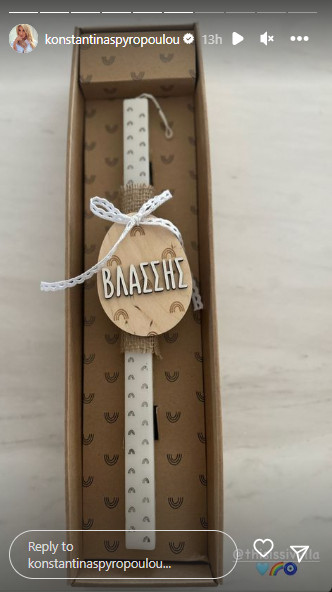 Η παρουσιάστρια προετοιμάζεται για το πρώτο Πάσχα με τον γιο της, αφού μέσα από τις νέες της αναρτήσεις αποκάλυψε τα ιδιαίτερα δώρα που δέχτηκε για τον μικρό της, αλλά και την πρώτη του λαμπάδα με το όνομα, Βλάσσης, όπως και θα βαφτίσει τον γιο της της σε μερικούς μήνες.