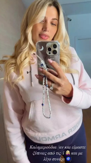 Σε πρόσφατο story που δημοσίευσε σήμερα η νεαρή μητέρα, καλημέρισε τους διαδικτυακούς της φίλους με μία νέα ολόσωμη φωτογραφία, γράφοντας: «Καλημερούδια (αν και είμαστε ξύπνιες από τις 4 και με λίγο συνάχι».