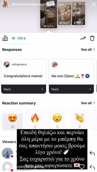 «Επειδή θηλάζω και περνάω όλη μέρα με το μπέμπη θα σας απαντήσω μόλις βρούμε λίγο χρόνο! Σας ευχαριστώ για το χρόνο που μας αφιερώσατε» δήλωσε στους followers της.