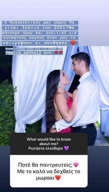 Η Άντρεα σε ένα “Q&A” μέσω Instagram έδωσε μια μίνι συνέντευξη και αποκάλυψη της λεπτομέρειες των επόμενων τους σχεδίων. Η ίδια δήλωσε ότι ότι ο θρησκευτικός γάμος θα γίνει τον Ιούνιο του 2021, ενώ θα προηγηθεί ο πολιτικός γάμος του ερωτευμένου ζευγαριού, για γραφειοκρατικούς λόγους πριν τη γέννηση του παιδιού και όταν το επιτρέψουν οι συνθήκες λόγω πανδημίας.