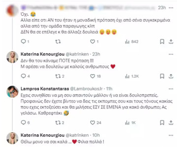 Μάλιστα, ένας χρήστης του Χ (πρώην Twitter) ανάρτησε screenshot με τη συγκεκριμένη δήλωση του δημοσιογράφου και η Κατερίνα Καινούργιου «σήκωσε το γάντι» και έσπευσε να απαντήσει, υπερασπιζόμενη τον εαυτό της.