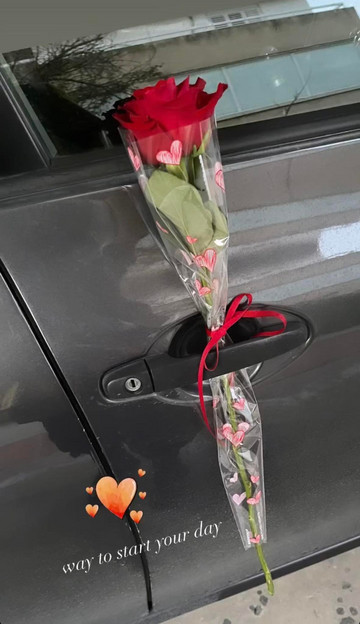 Η ορκισμένη single αντίκρυσε νωρίς τα ξημερώματα ένα κόκκινο τριαντάφυλλο στο αυτοκίνητό της, ένδειξη έρωτα και αγάπης.