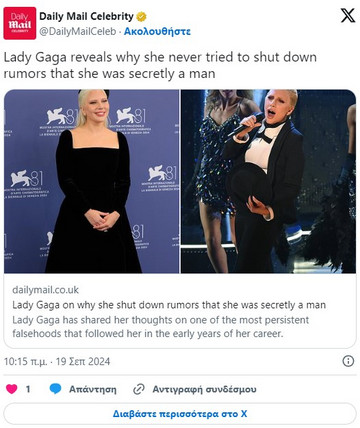 Lady Gaga εξήγησε γιατί ποτέ δεν επηρεάστηκε από τα σχόλια που άκουγε στην αρχή της καριέρας της, ότι μοιάζει σαν να ήταν άντρας κάποτε.