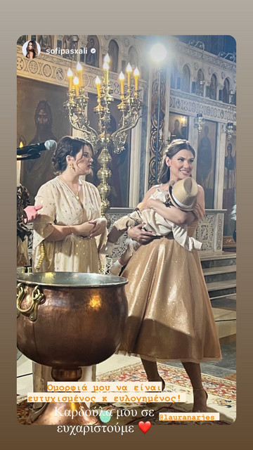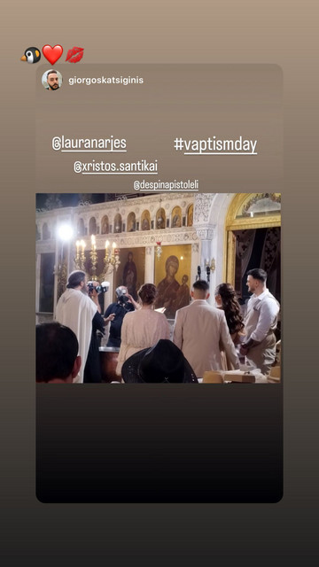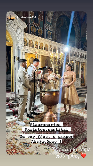 Στον ιερό ναό της Αγίας Σοφίας έγινε η βάφτιση του γιου της Λάουρα Νάργες και του Χρήστου Σαντικάι χθες, Σάββατο 23 Σεπτεμβρίου.