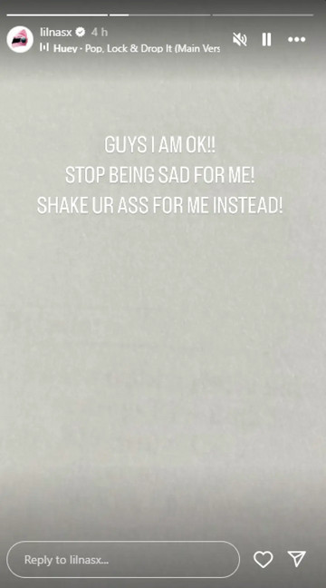 Λίγες ώρες μετά, ο Lil Nas X επανήλθε με νέο βίντεο, δείχνοντας και τις δύο πλευρές του προσώπου του και σχολιάζοντας με χιούμορ: «Εδώ είμαστε φυσιολογικοί… εδώ γινόμαστε τρελοί». Με τη φράση «I’m so cooked», που στη σύγχρονη αμερικανική αργκό σημαίνει πως κάποιος έχει εξαντληθεί ή είναι σε δύσκολη κατάσταση, φάνηκε να προσπαθεί να ελαφρύνει το κλίμα.